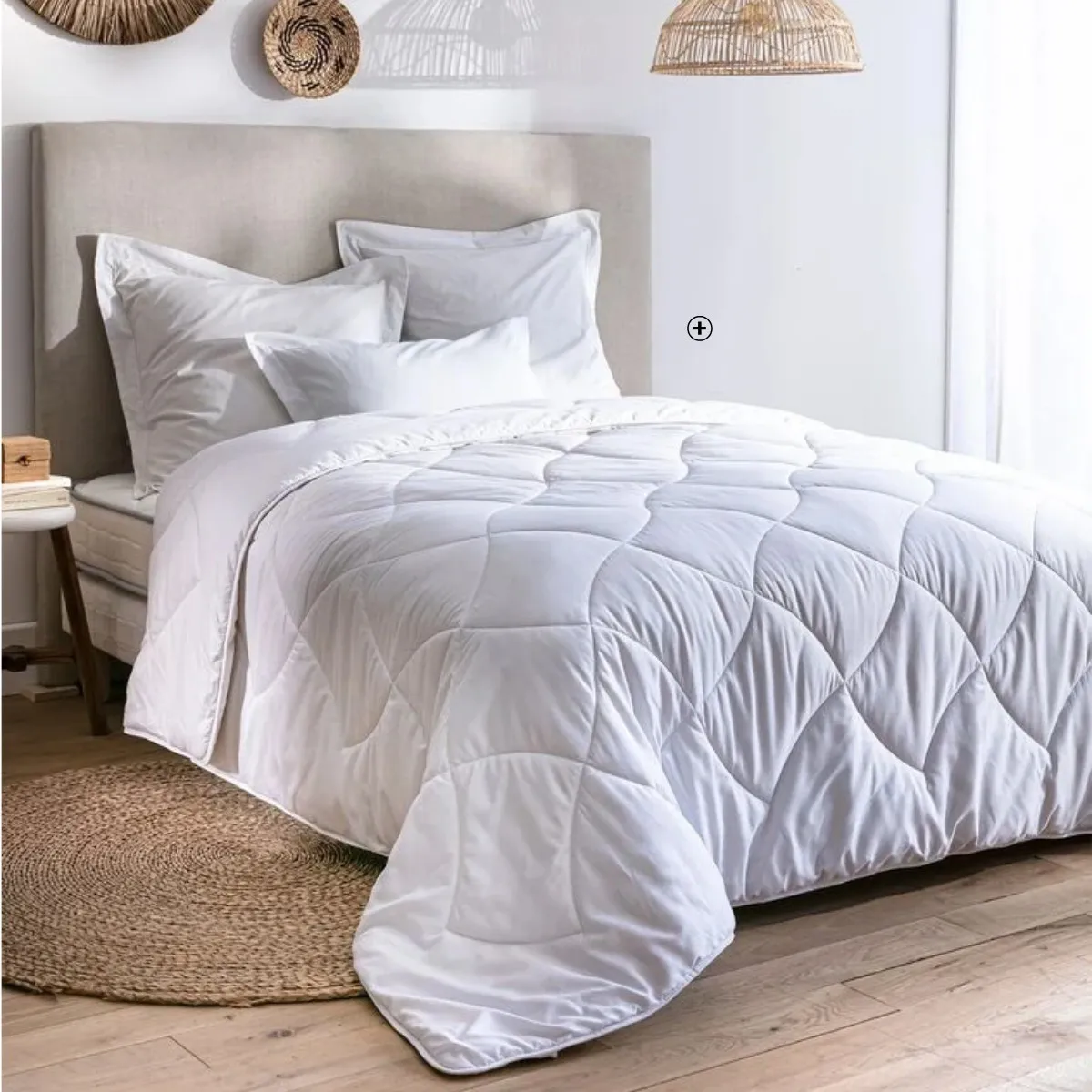 Couette blanche élégante et intemporelle, douce, fraîche et confortable. Facile à associer, elle crée une ambiance chic et apaisante.